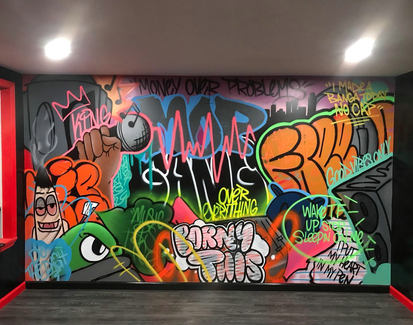 代表作品:擅长涂鸦绘画,画面色彩以大量的具有视觉冲击力的色彩构成,增加涂鸦的随意性和创意性